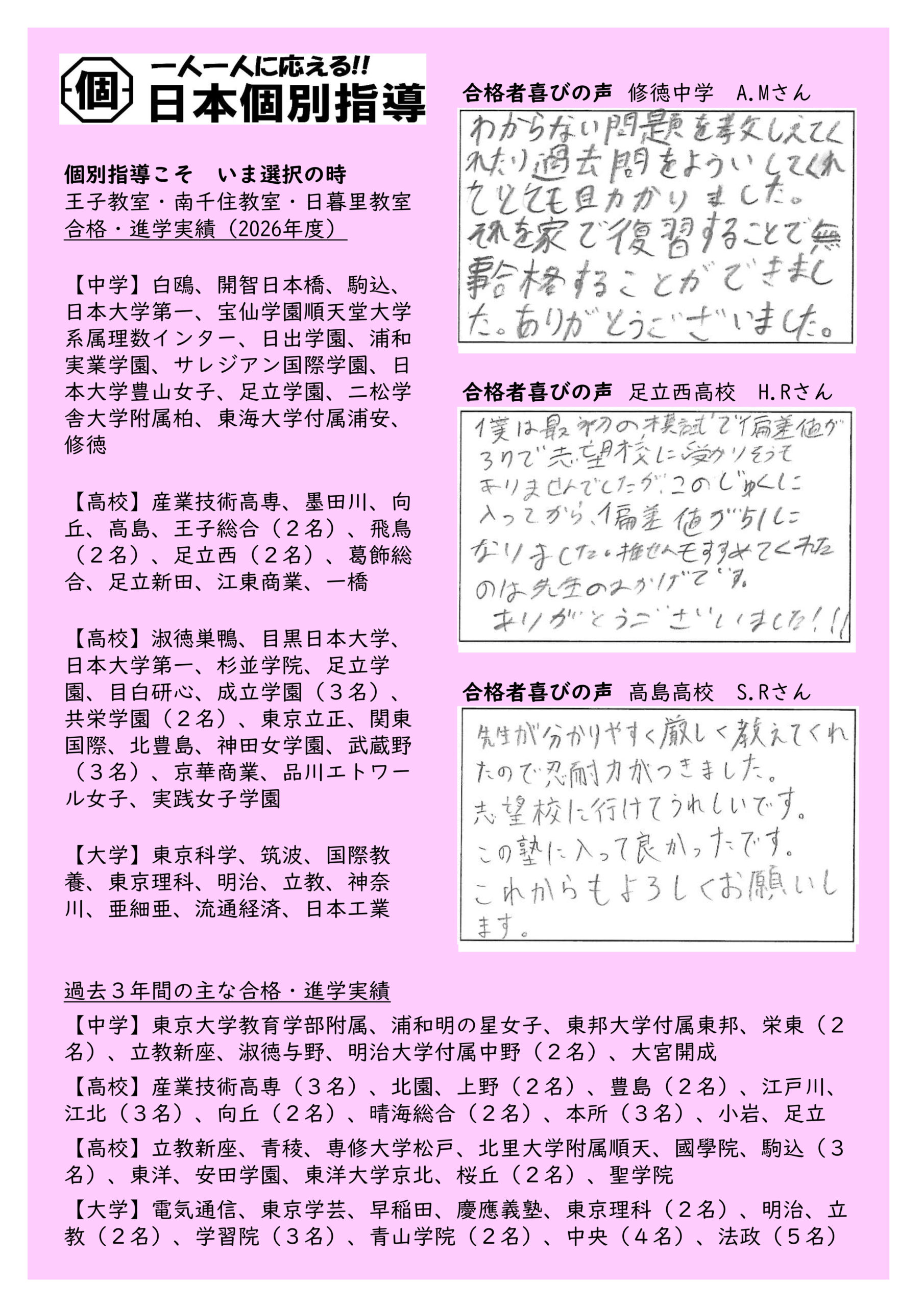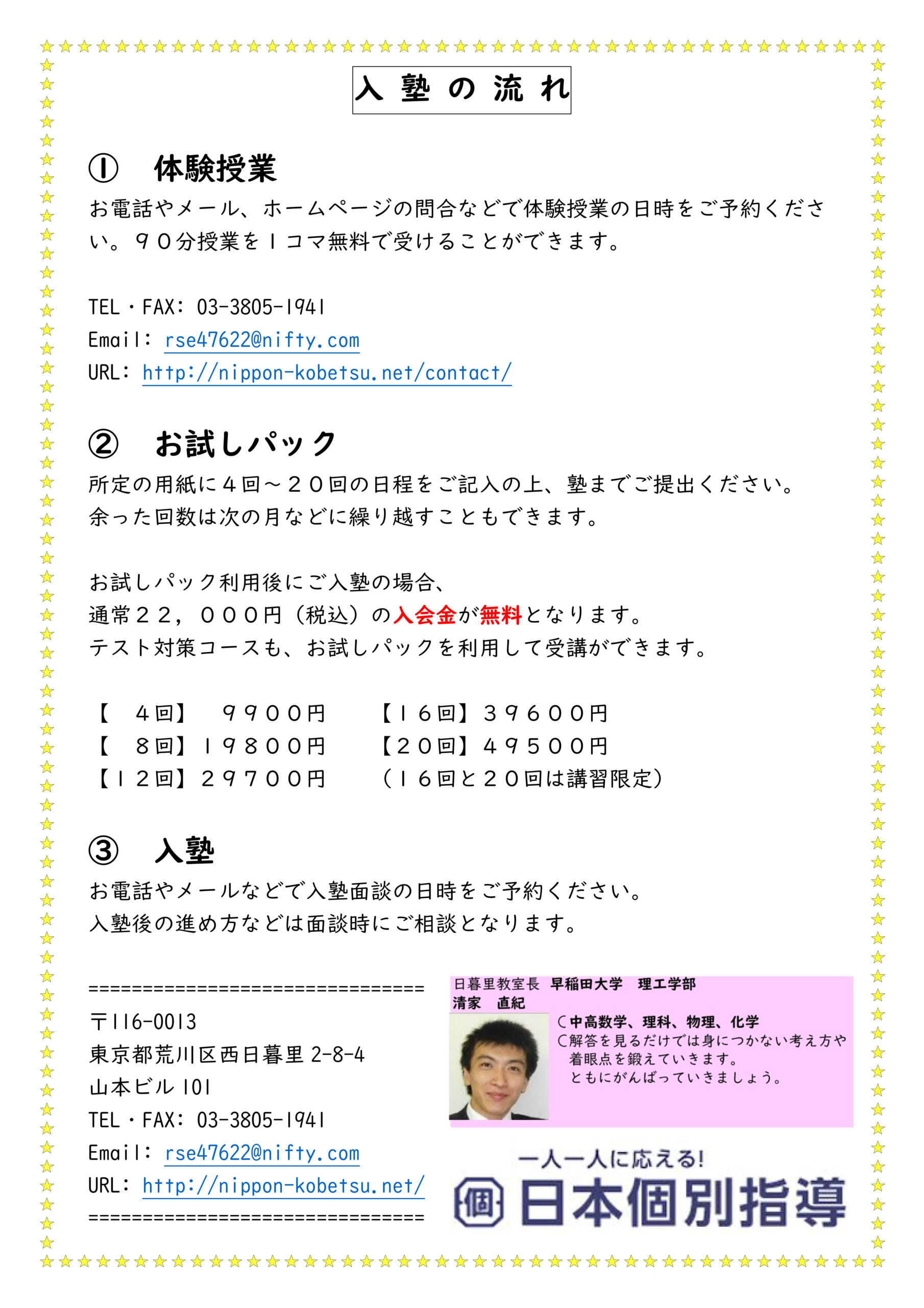 日本個別指導日暮里教室の資料です。