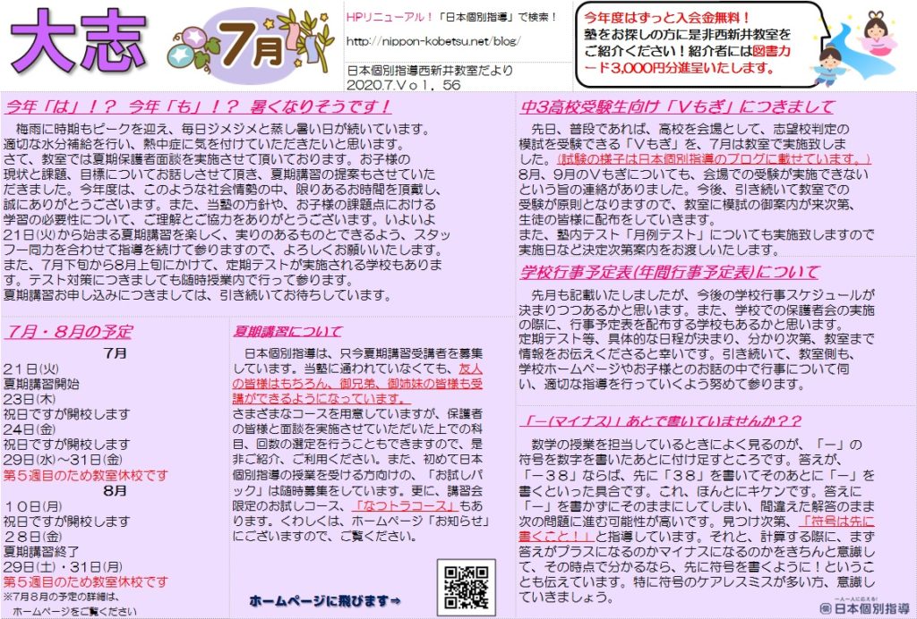 西新井教室だより「大志」7月号が出来ましたのでアップします。