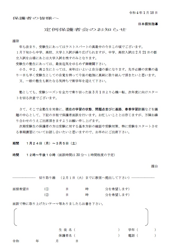 4)定例保護者会のお知らせ
