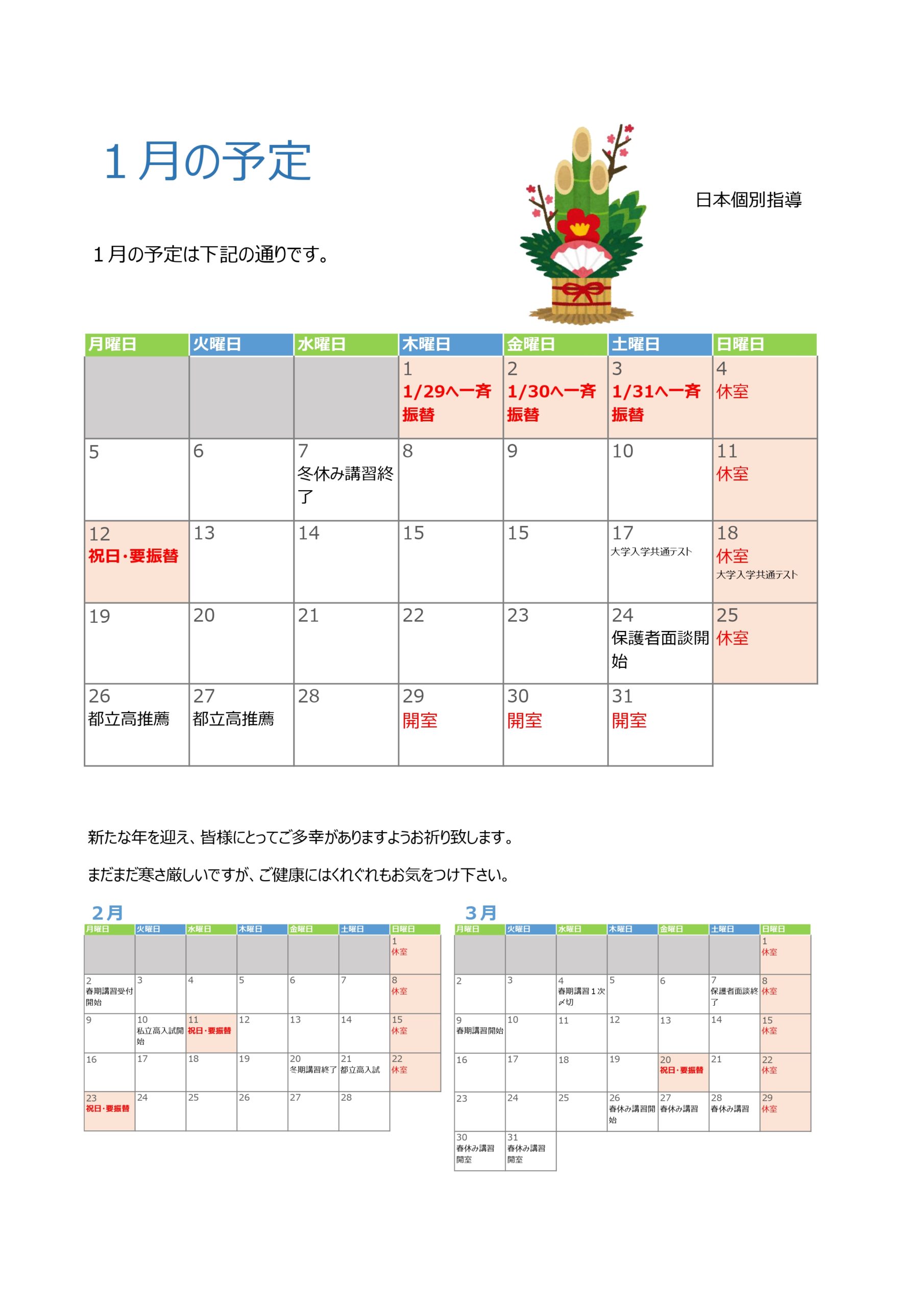 【12月分同封物】1月の予定