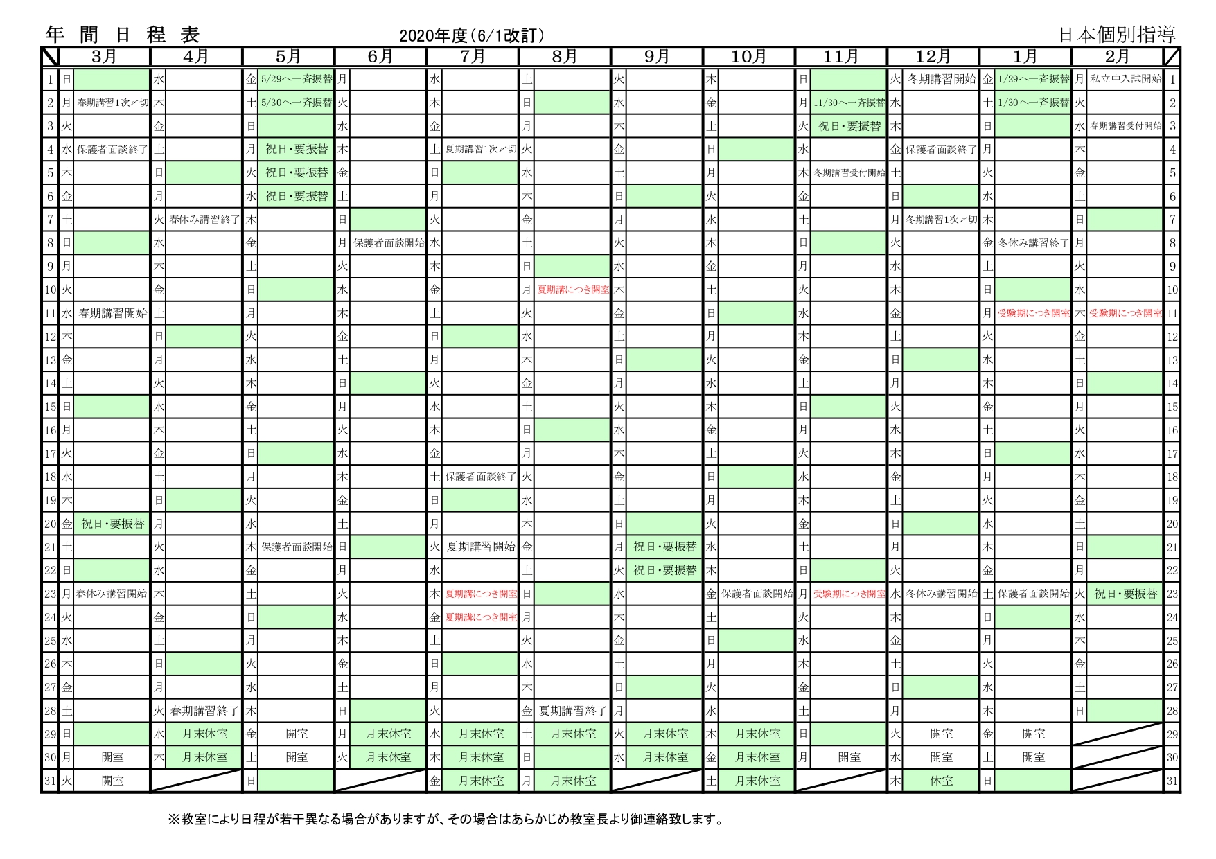 年間行事予定表
